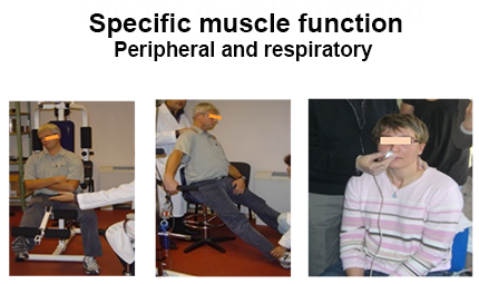 L’exploration de la fonction musculaire peut être spécifique à certains muscles. L’évaluation de la fonction musculaire des muscles locomoteurs la mieux standardisée concerne les muscles extenseurs de la cuisse. Il est possible d’évaluer la force et l’endurance de ces muscles, et ont une valeur diagnostique et pronostique dans différentes maladies chroniques. Les muscles respiratoires peuvent également faire l’objet d’une exploration de la force et de l’endurance, de manière standardisée.